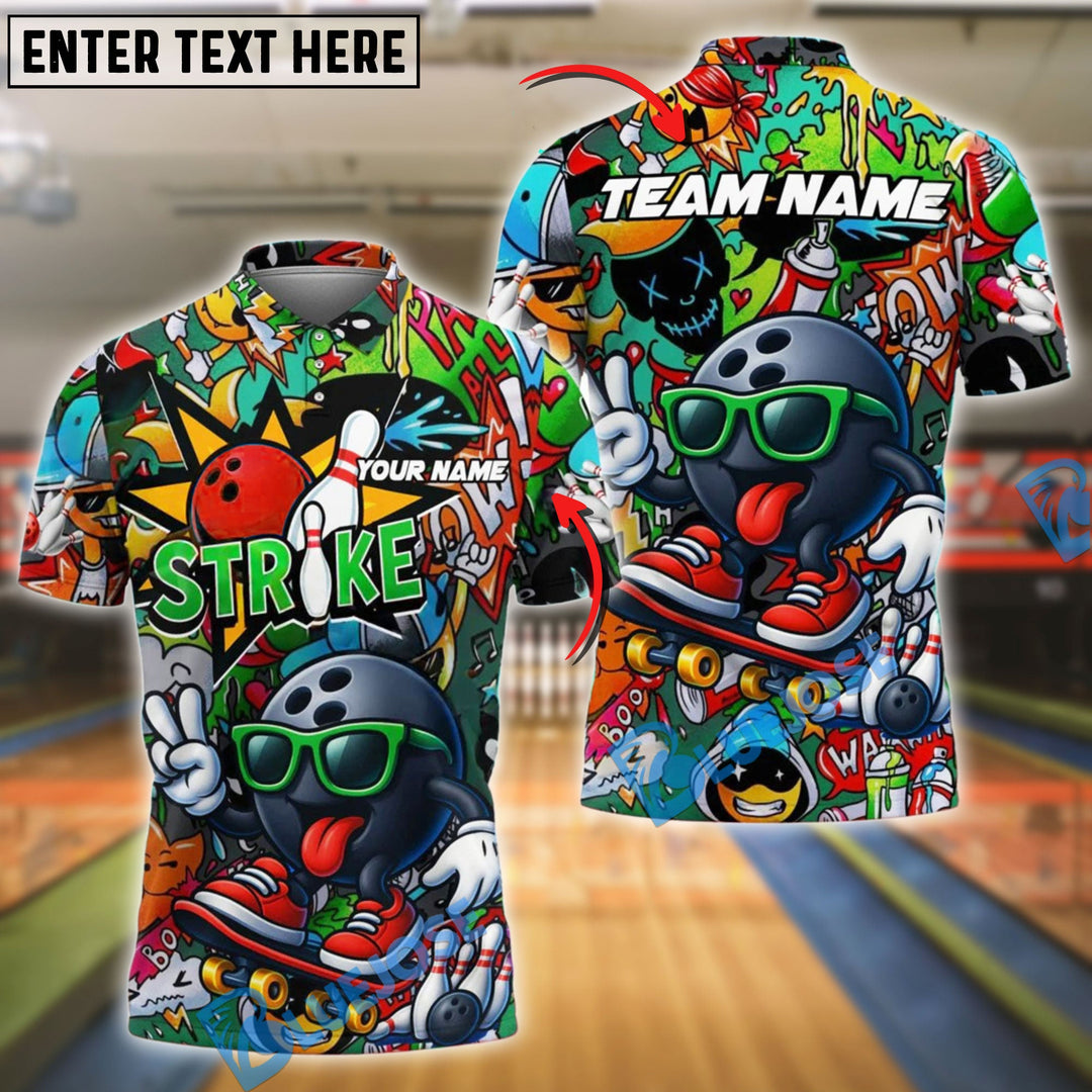 BlueJose Bowling Street Strike Graffiti Skater Style Customized Name, Team Name 3D Shirt (4 Colors)
