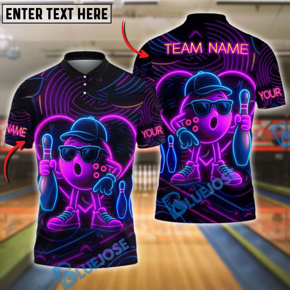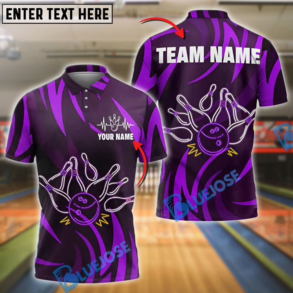 BlueJose Bowling Ball & Pins Neon Funny Customized Name, Team Name 3D Shirt (4 Colors)
