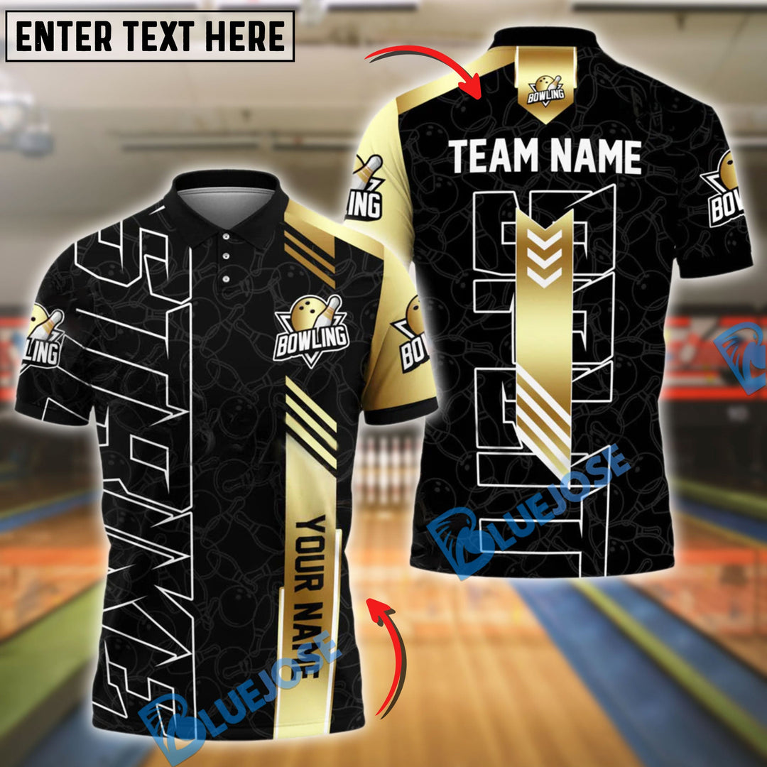 BlueJose Bowling Modern Gold Vector Style Customized Name, Team Name 3D Shirt (4 Colors)