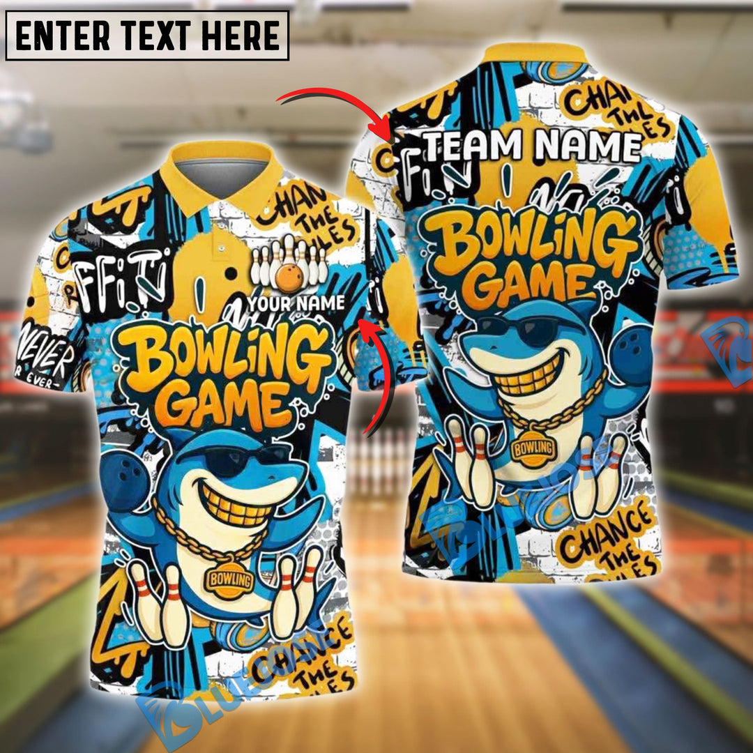 BlueJose Bowling Funny Shark Graffiti Style Customized Name, Team Name 3D Shirt (4 Colors)