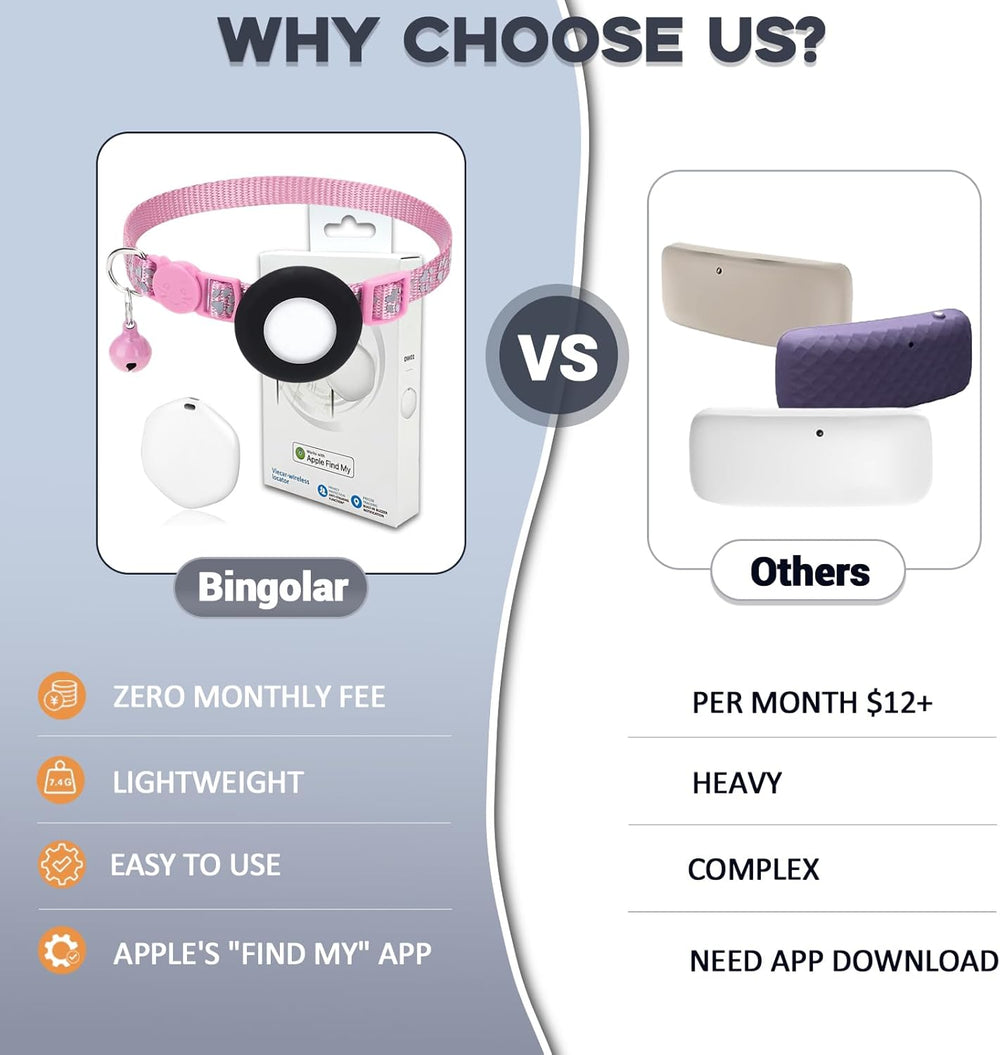 GPS Cat Tracker with Collar – Waterproof & Apple Find My Compatible (Pink)