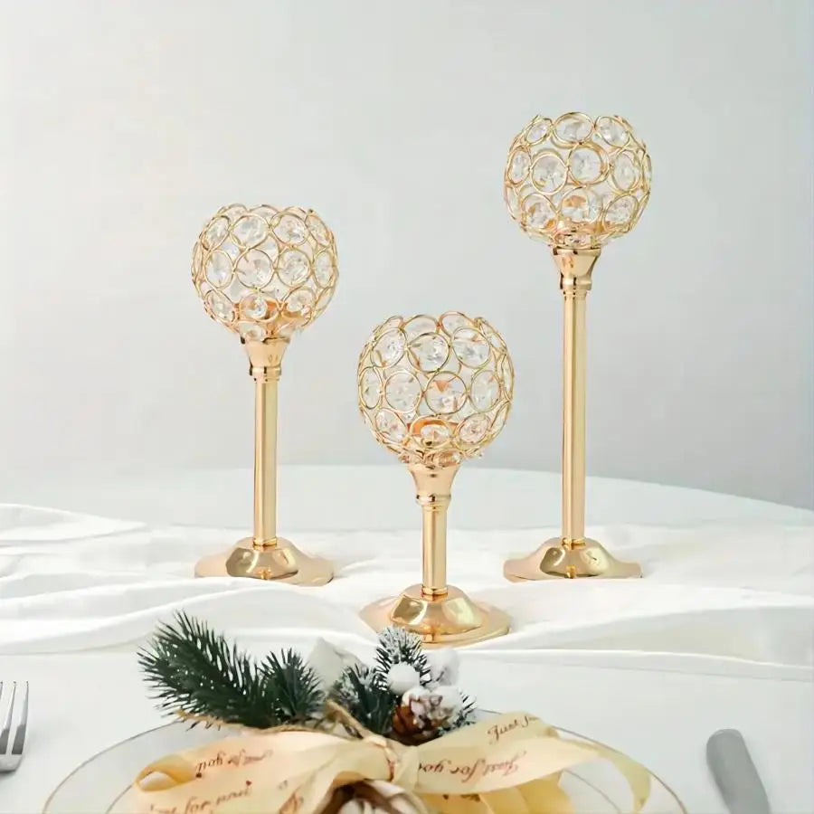 Gold Crystal Flower Candle Holder Set – Vintage Iron Candlestick for Table Centerpiece & Wedding Décor