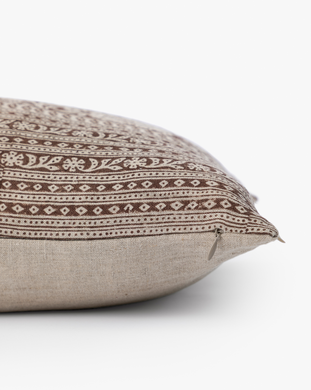 Intricately patterned with a hand-blocked floral motif, the Baptista Pillow Cover speaks to timeless artistry and craft. Its rich contrast and detailed border lend a collected, storied feel, making it a striking accent whether styled as a statement piece or layered into an eclectic mix.