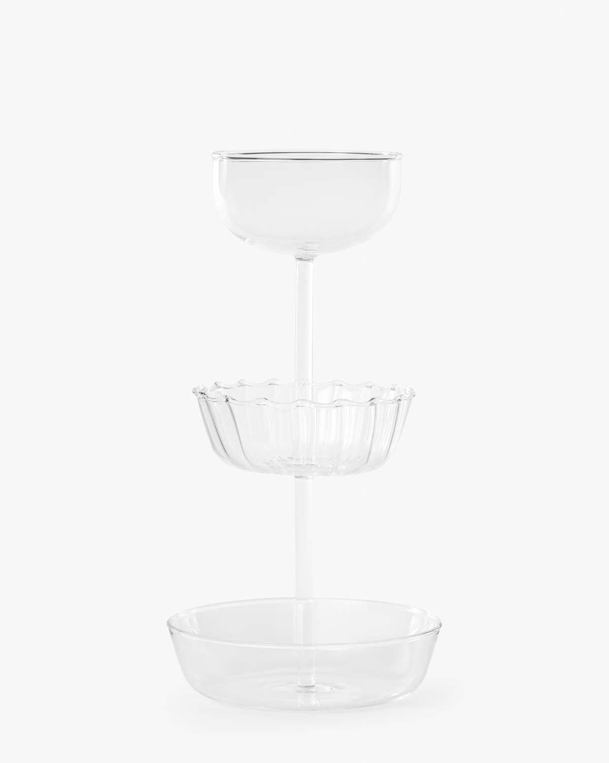 The Beckman 3-Tier Tray brings height and beauty to your tabletop display. Crafted from clear glass with tiered bowls in varied shapes, it’s perfect for serving hors d’oeuvres, desserts, or fresh fruit. A versatile entertaining piece that feels both refined and effortlessly functional.