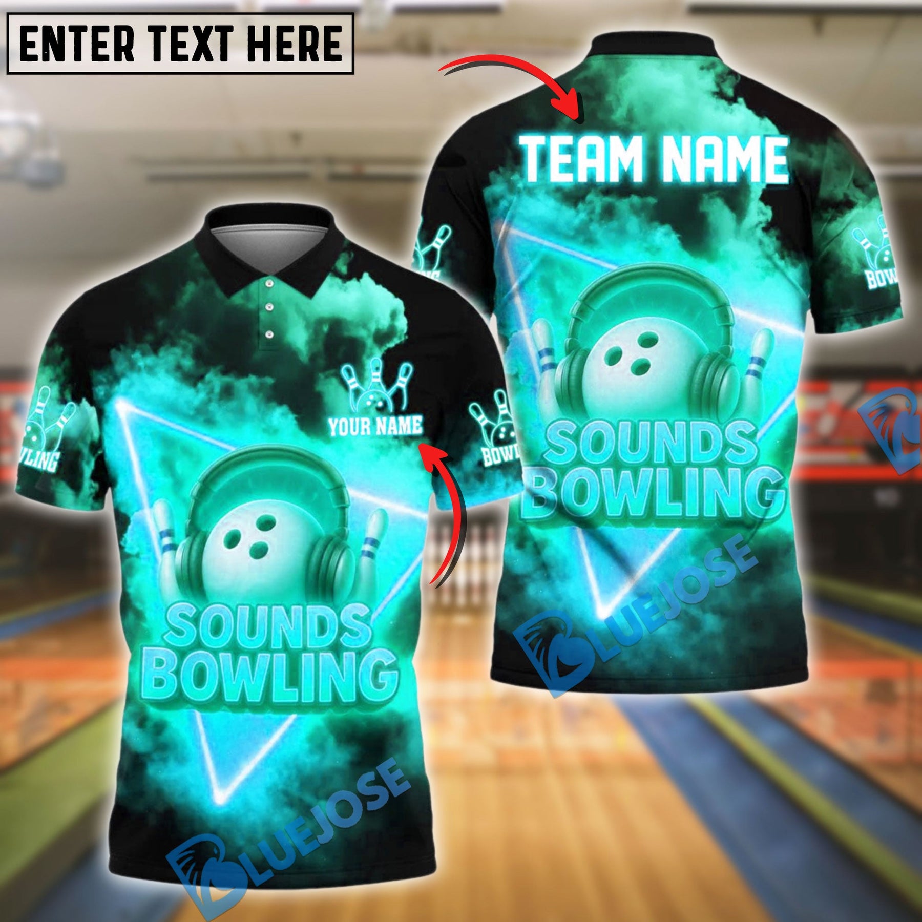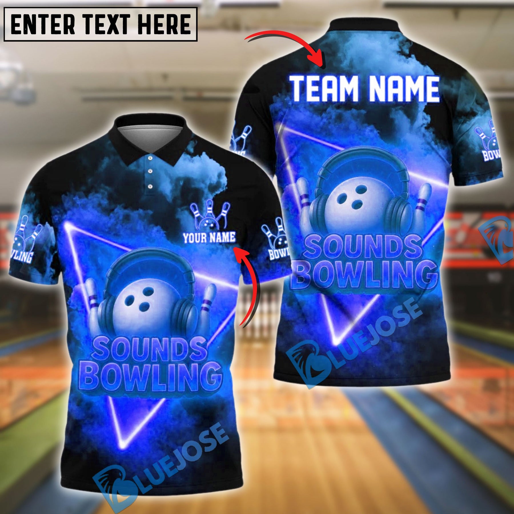 BlueJose Bowling Sounds Neon DJ Style Customized Name, Team Name 3D Shirt (4 Colors)