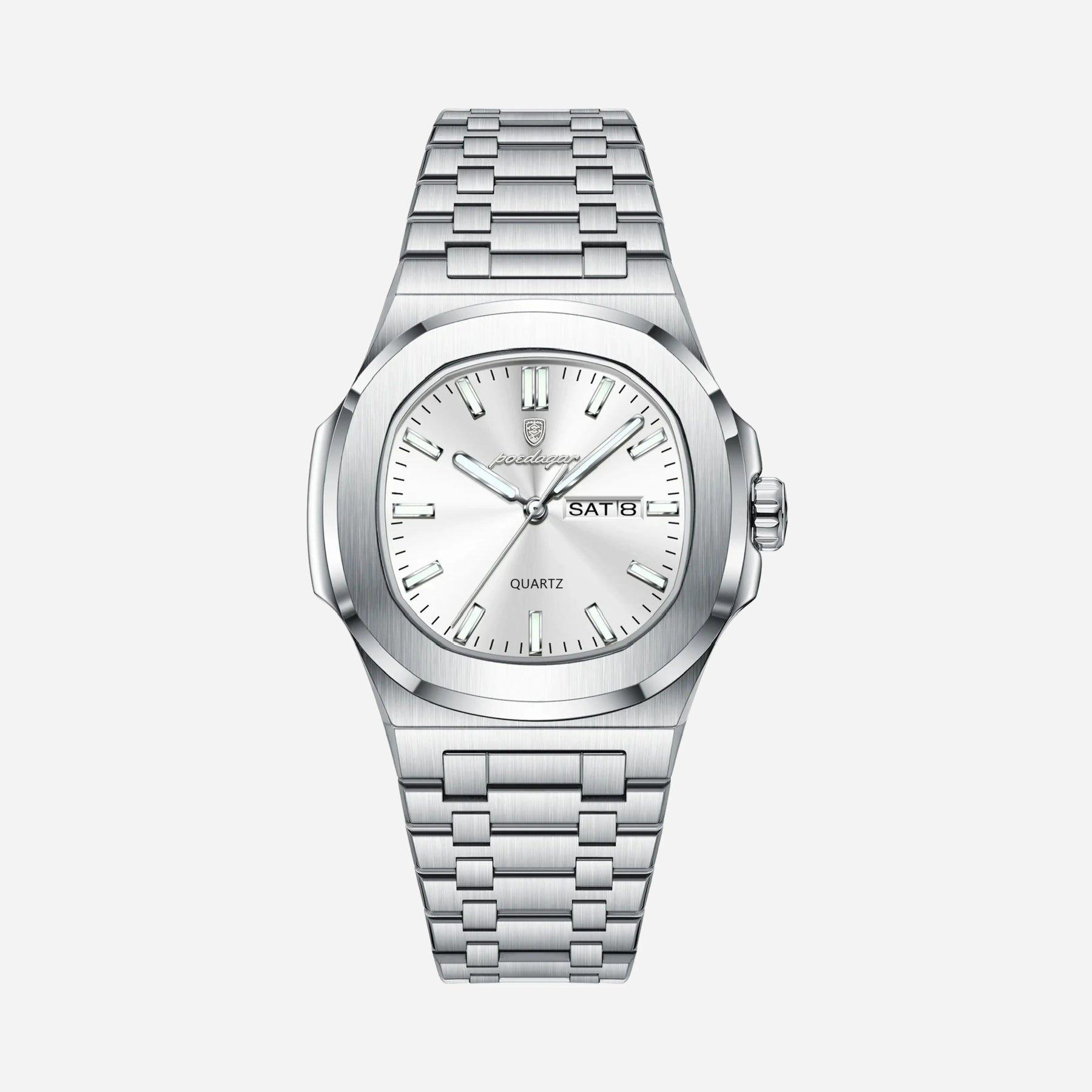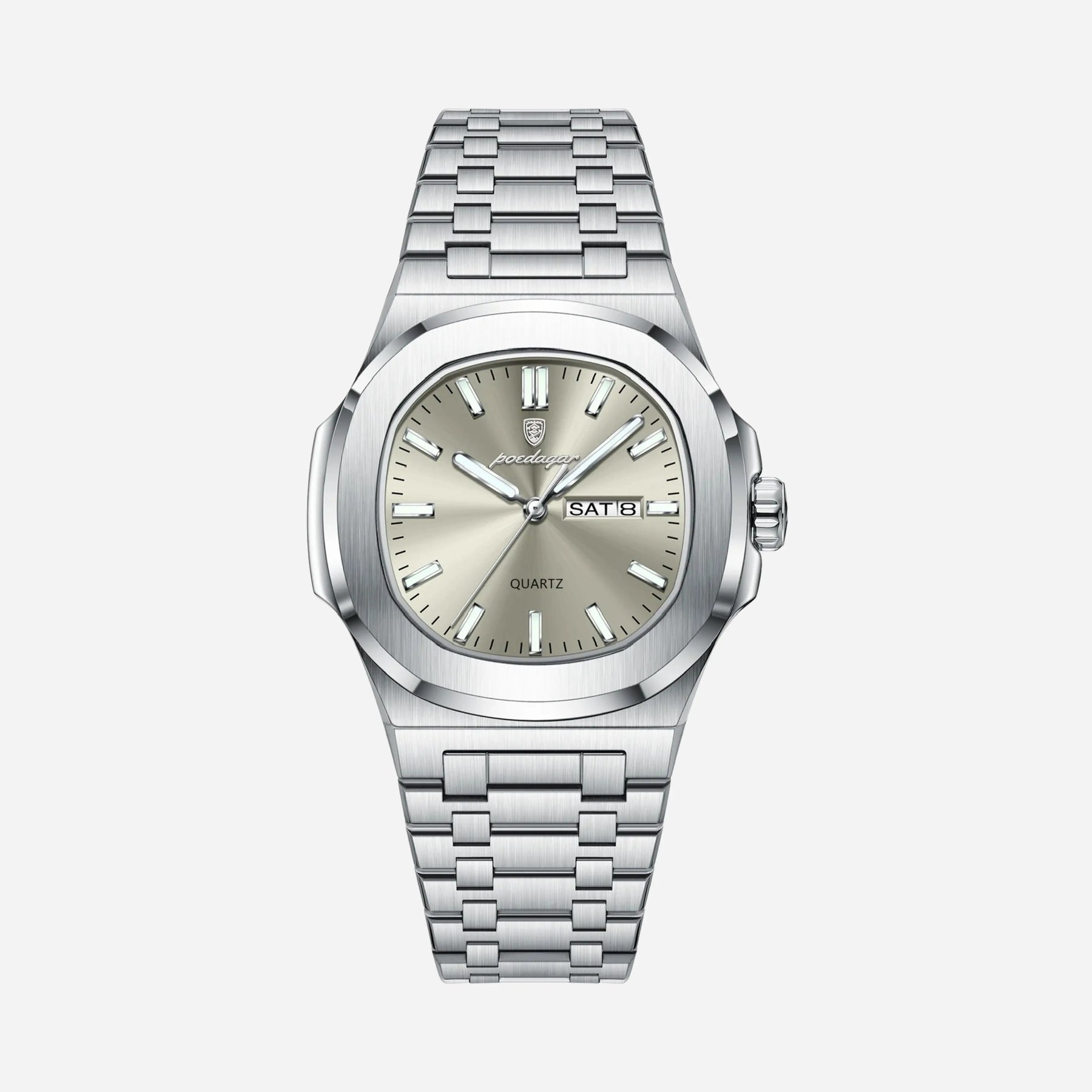 • Day-Date Window: Practical dual display at 3 o’clock.