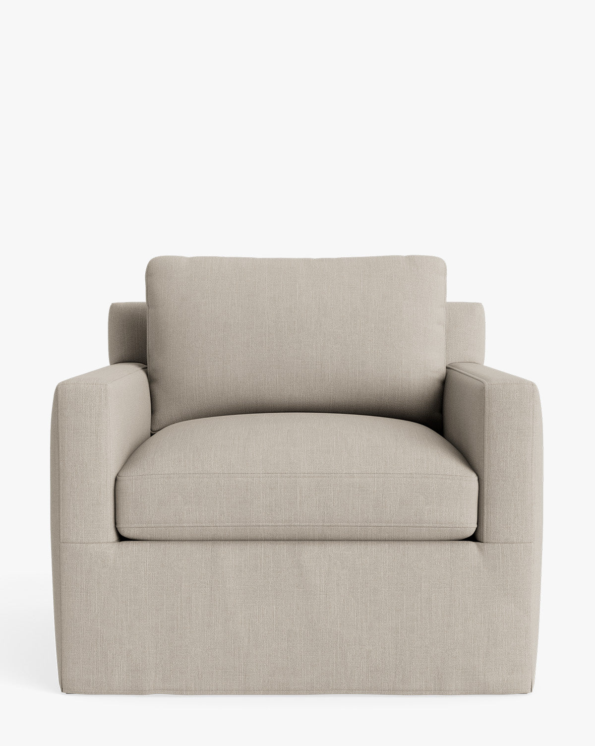 The Peterson Slipcover Lounge Chair pairs relaxed elegance with everyday practicality. Designed with generous cushioning and a tailored slipcover, it offers inviting comfort and a look that adapts to any room. With multiple slipcover options, you’ll find the perfect fit and color for your space. Each slipcover is thoughtfully crafted for easy care, making it as livable as it is refined.