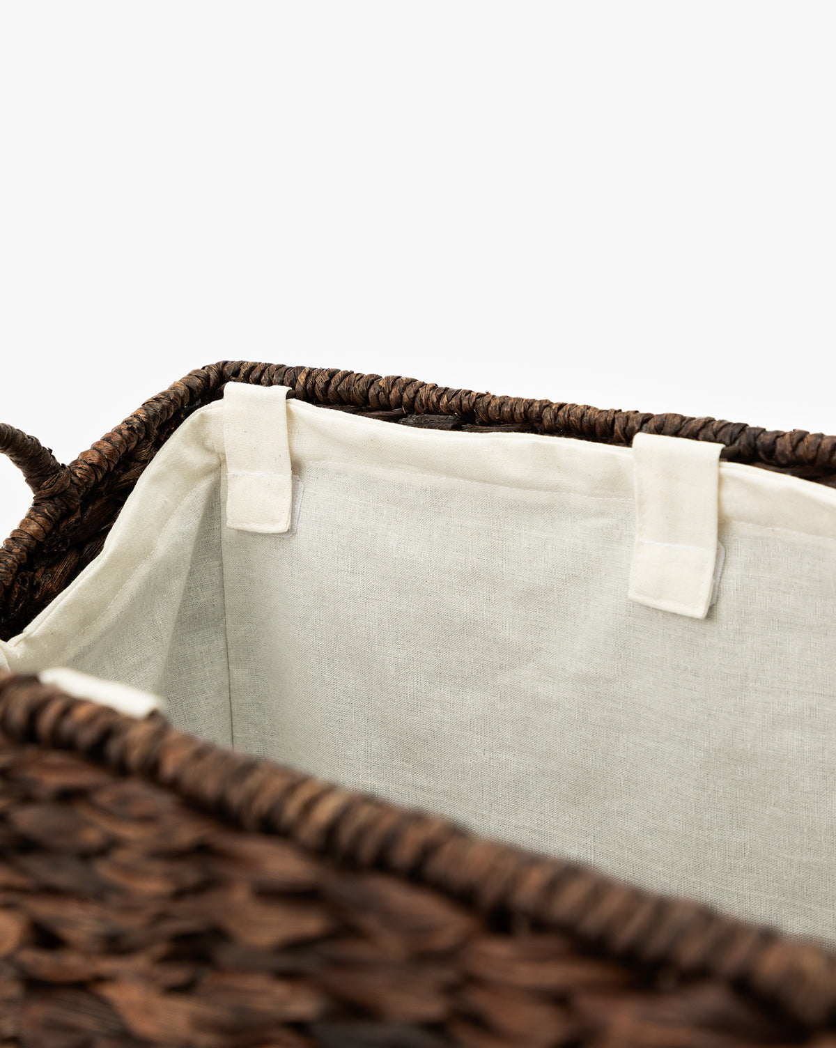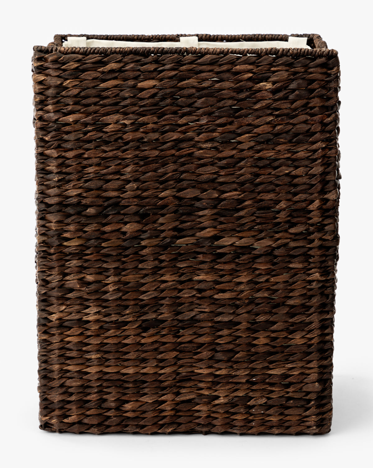 Handwoven from richly textured natural fibers, this laundry hamper blends function with timeless design. Its structured shape, deep brown finish, and removable liner make it both practical and stylish—perfect for keeping laundry neatly tucked away while adding warmth and artisanal character to any space.
